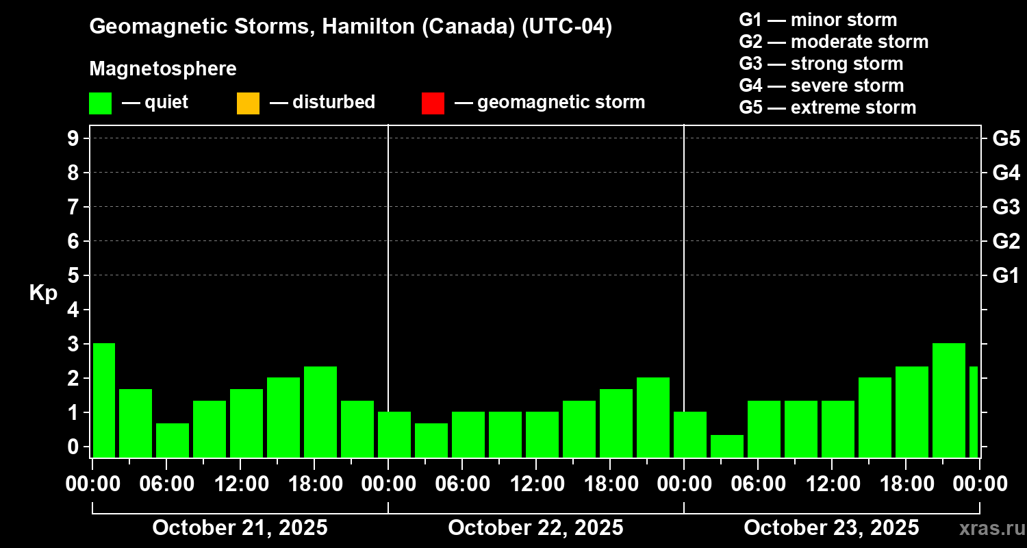 Geomagnetic storms in Hamilton (Canada) — Oct 23, 2025