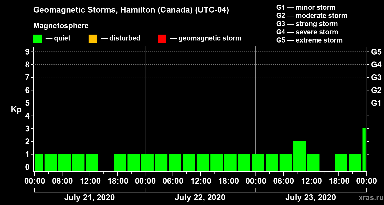 Geomagnetic storms in Hamilton (Canada) — Jul 23, 2020
