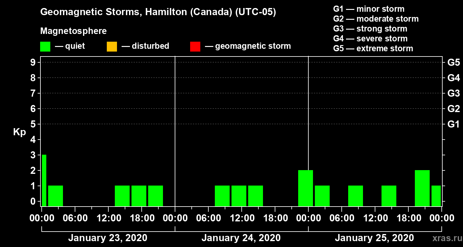 Geomagnetic storms in Hamilton (Canada) — Jan 25, 2020