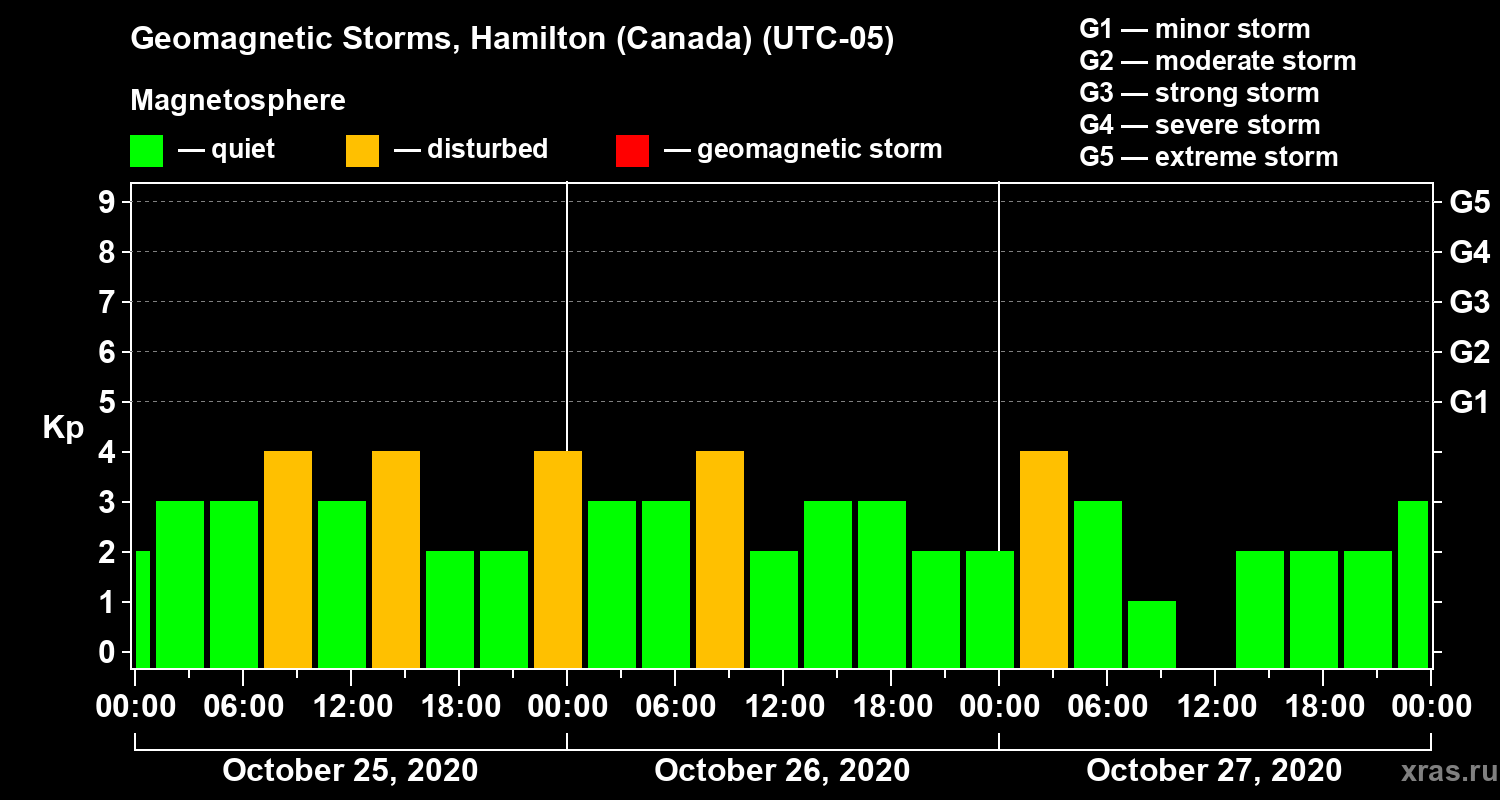 Geomagnetic storms in Hamilton (Canada) — Oct 27, 2020