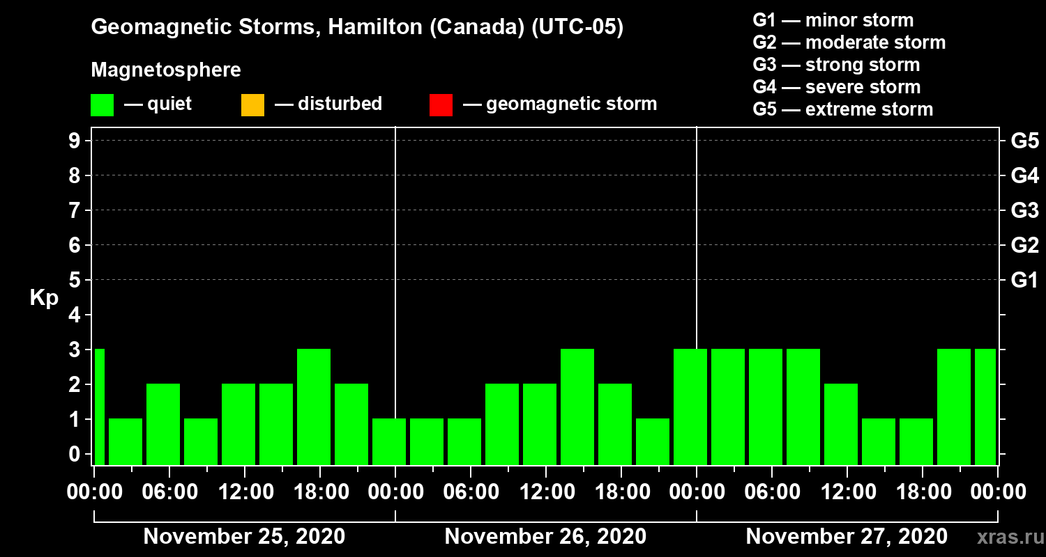 Geomagnetic storms in Hamilton (Canada) — Nov 27, 2020