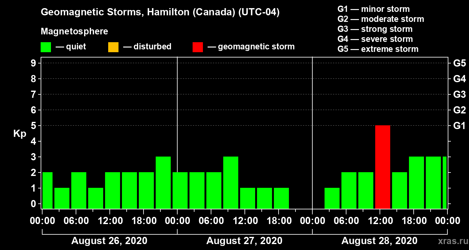 Geomagnetic storms in Hamilton (Canada) — Aug 28, 2020