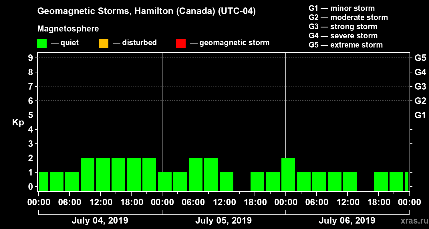 Geomagnetic storms in Hamilton (Canada) — Jul 06, 2019