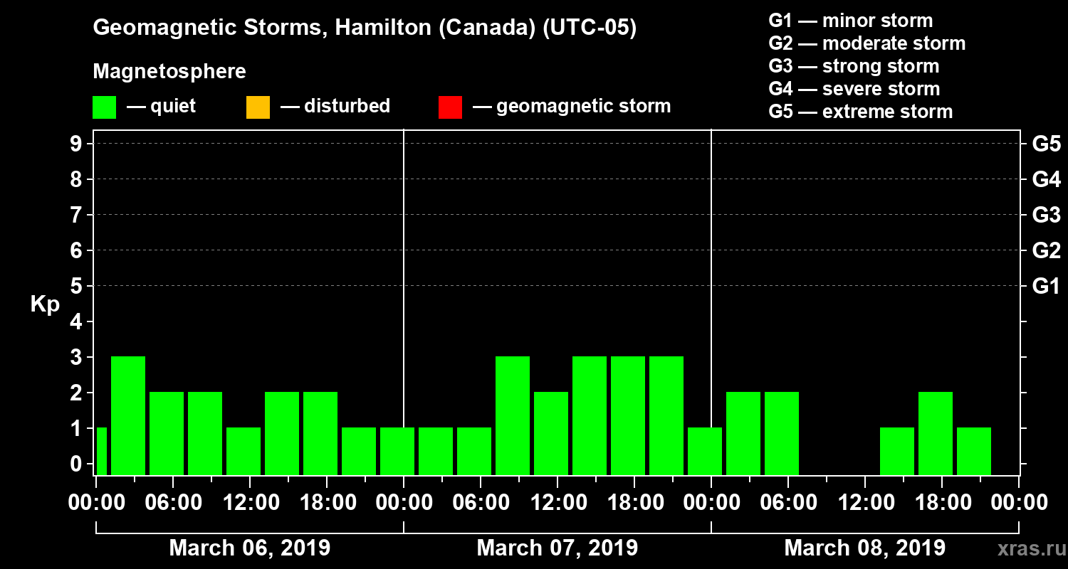 Geomagnetic storms in Hamilton (Canada) — Mar 08, 2019