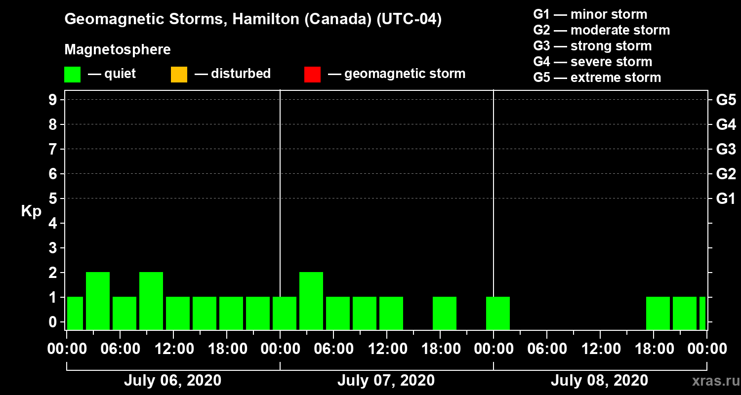 Geomagnetic storms in Hamilton (Canada) — Jul 08, 2020