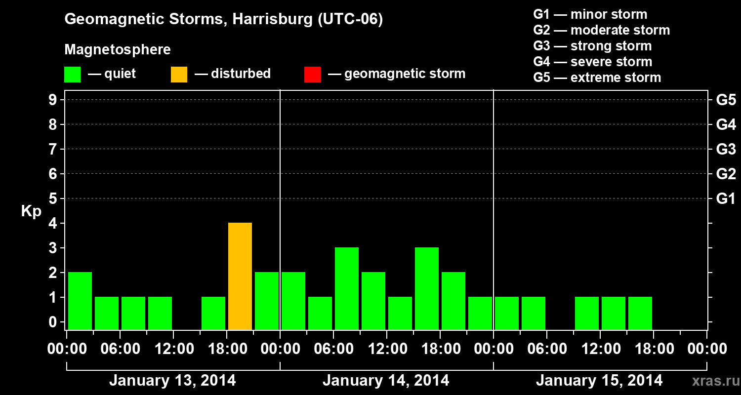 Geomagnetic storms in Harrisburg in January 2014