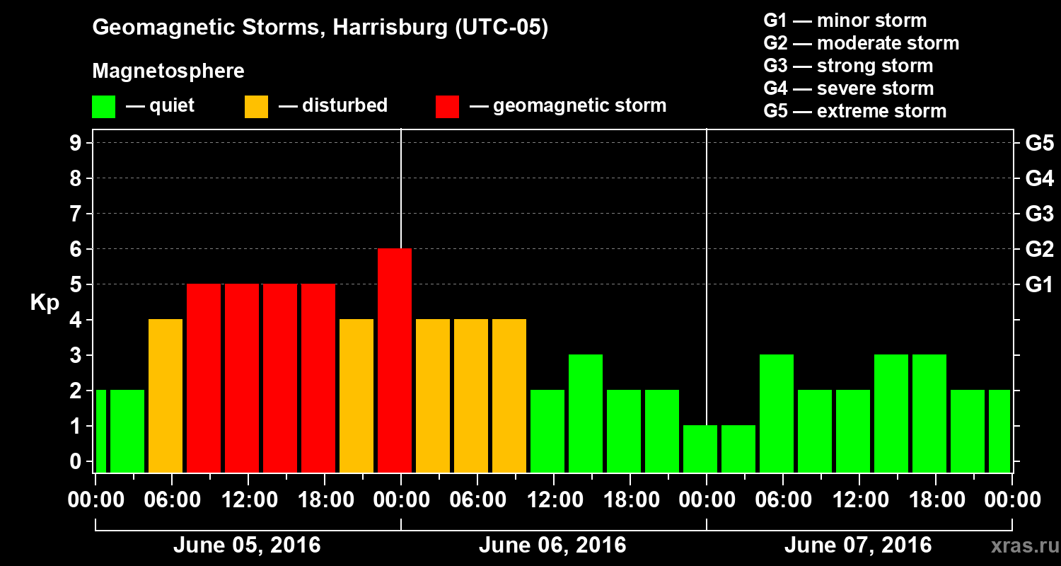 Geomagnetic storms in Harrisburg in June 2016