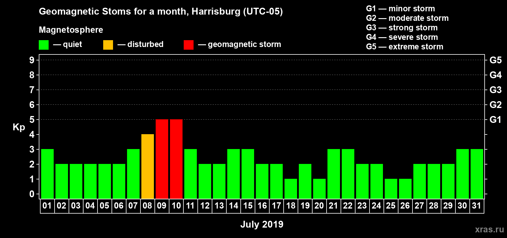 10 July 2019 — Magnetic storm of level G1