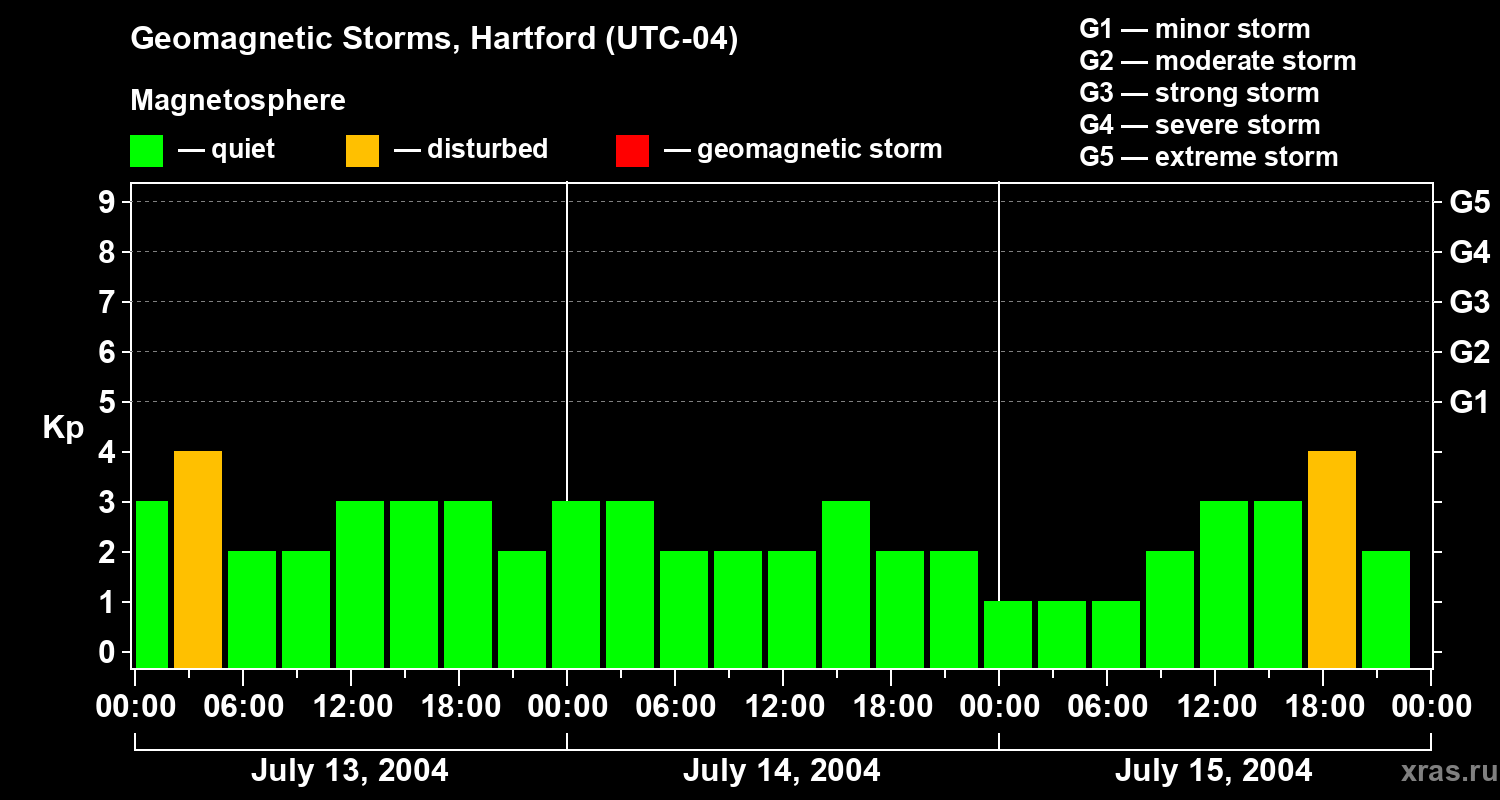 Geomagnetic storms in Hartford — Jul 15, 2004