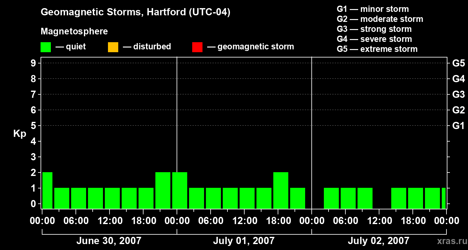 Geomagnetic storms in Hartford on Jul 02, 2007