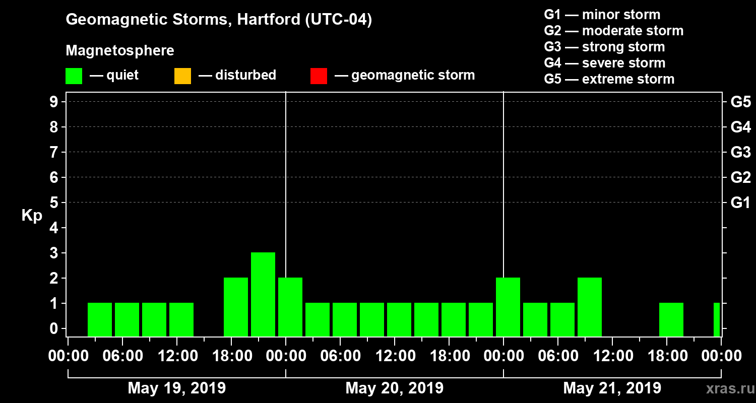 Geomagnetic storms in Hartford in May 2019