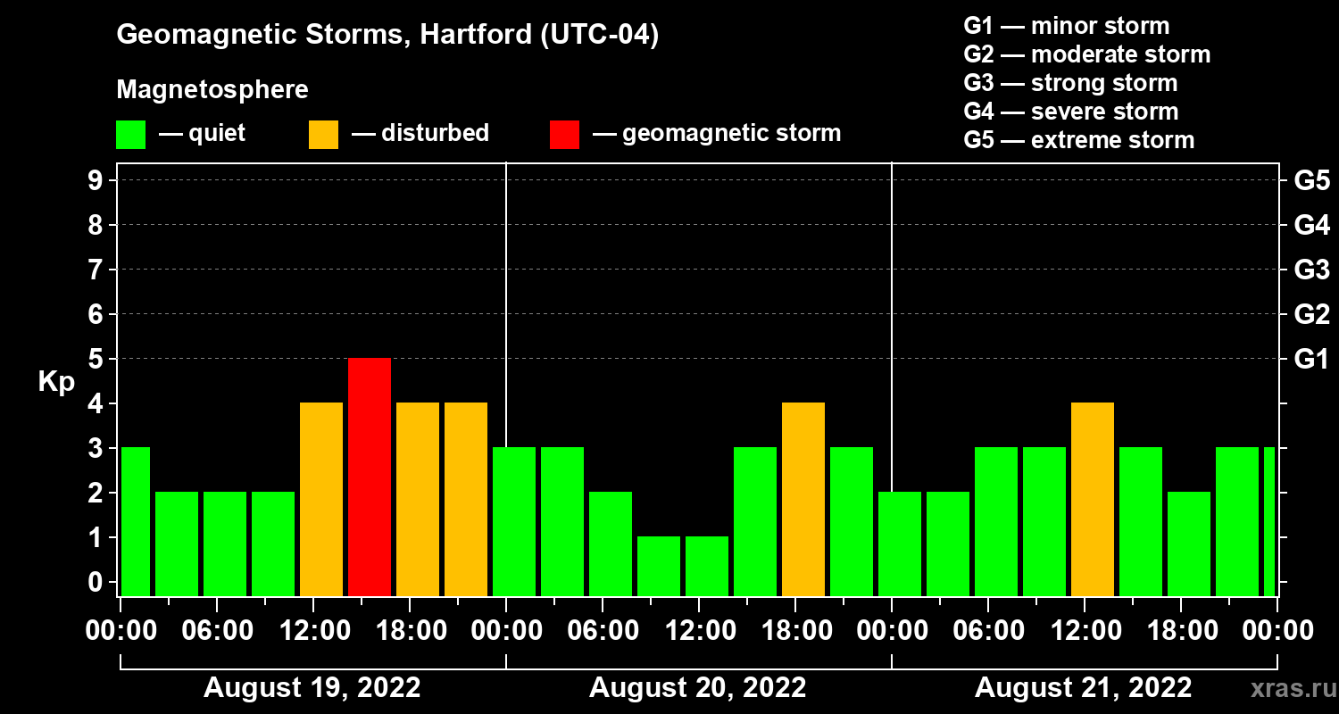 Geomagnetic storms in Hartford — Aug 21, 2022