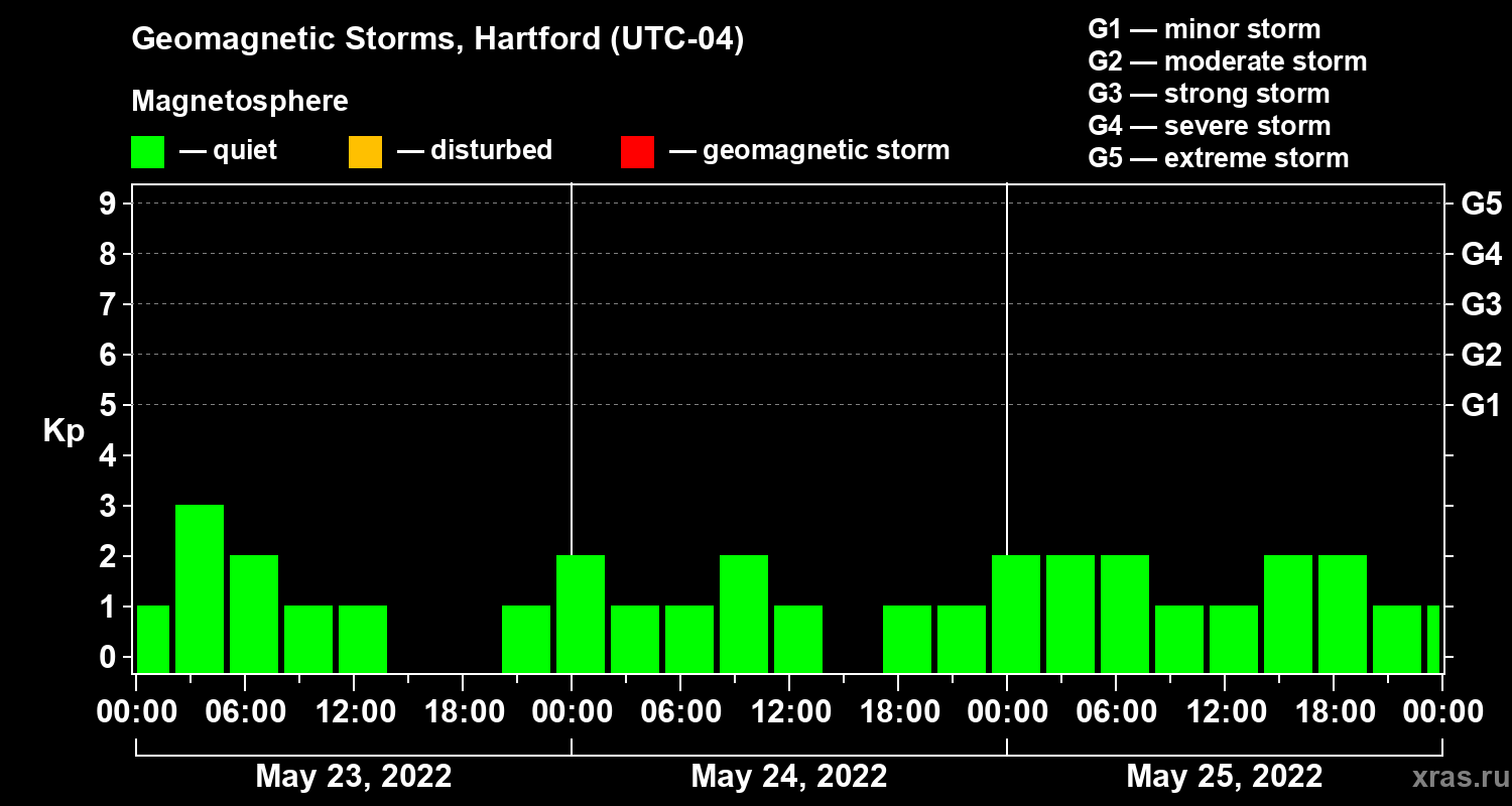 Geomagnetic storms in Hartford — May 25, 2022