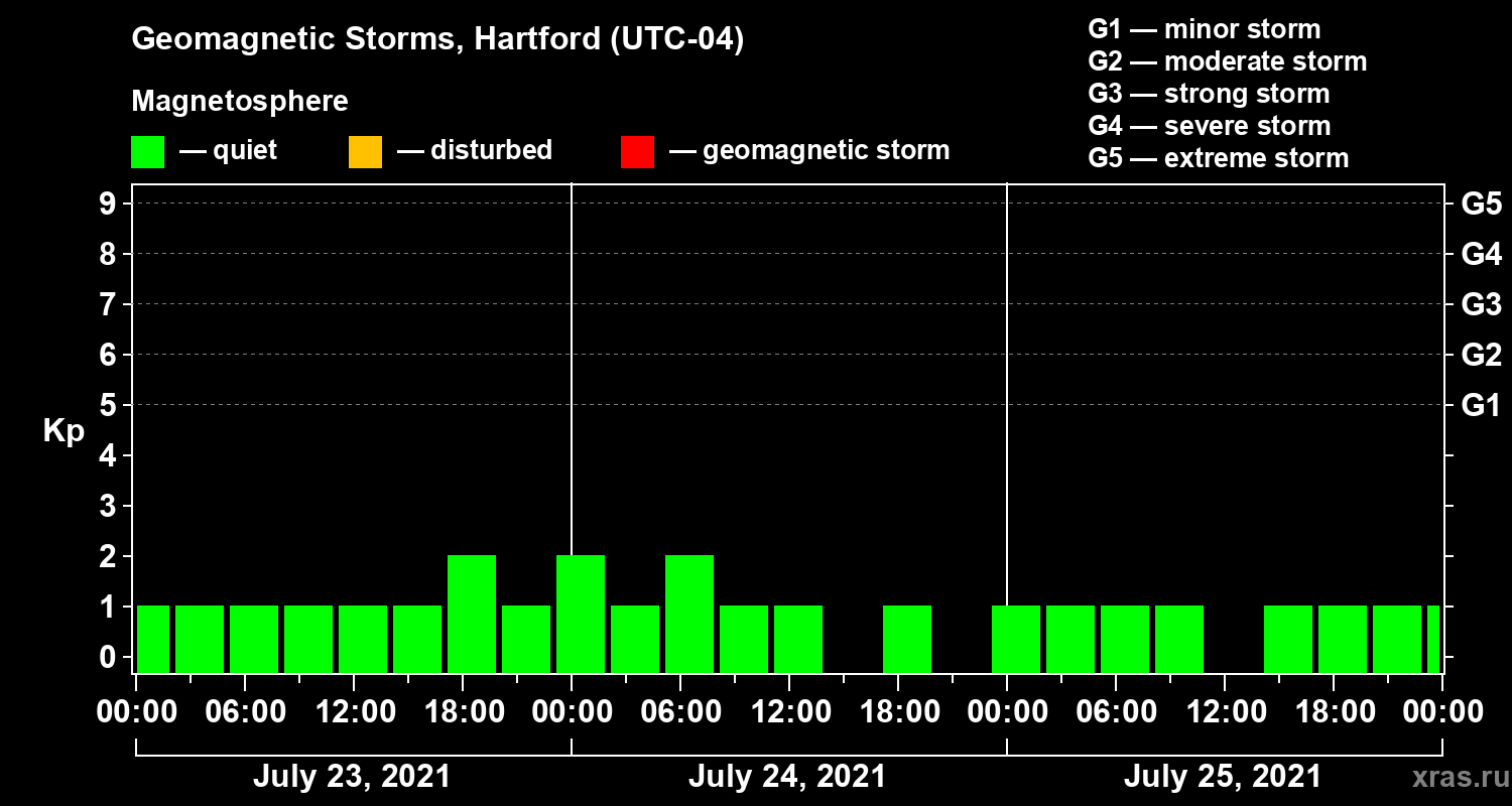 Geomagnetic storms in Hartford — Jul 25, 2021