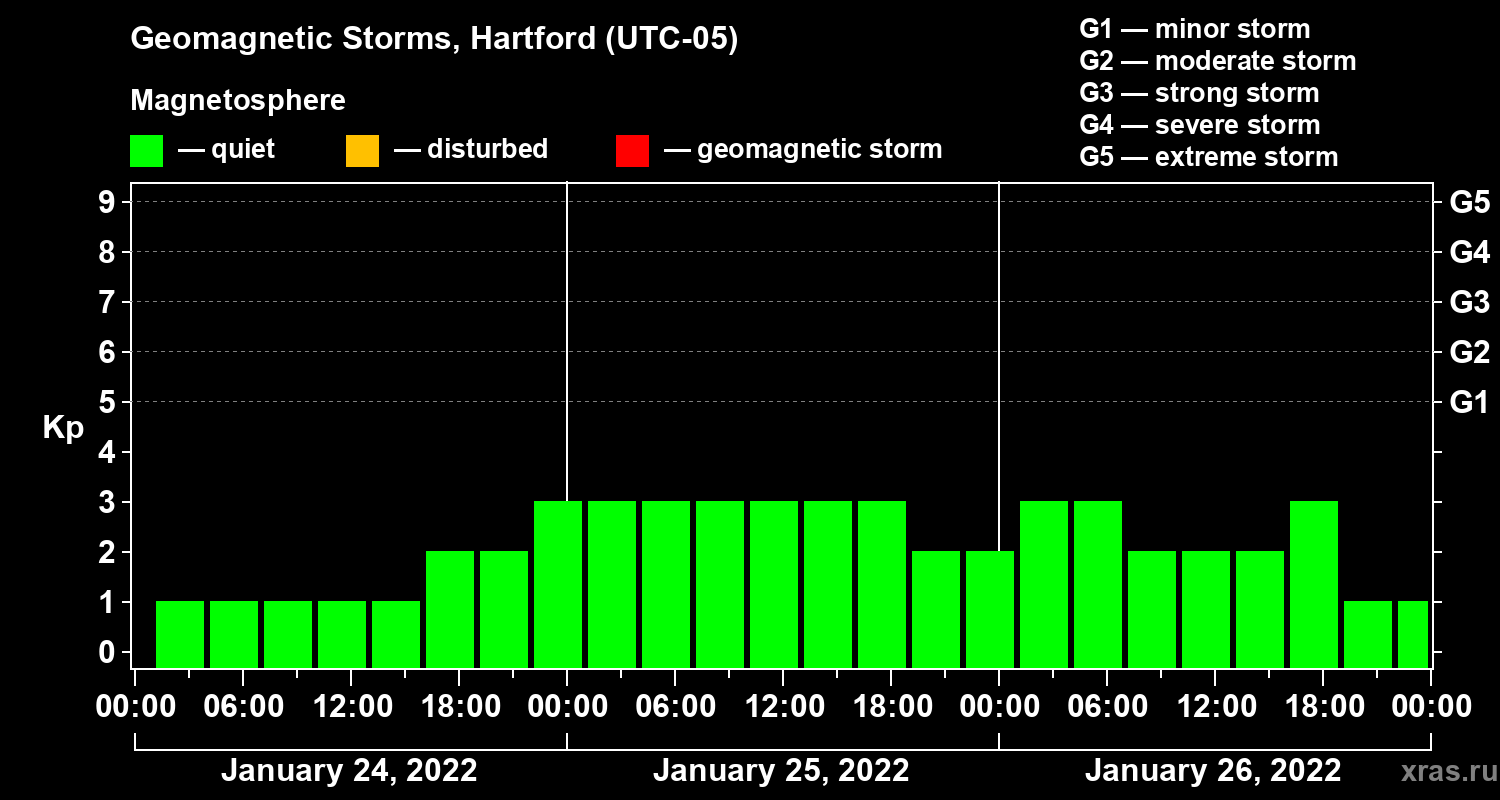 Geomagnetic storms in Hartford — Jan 26, 2022