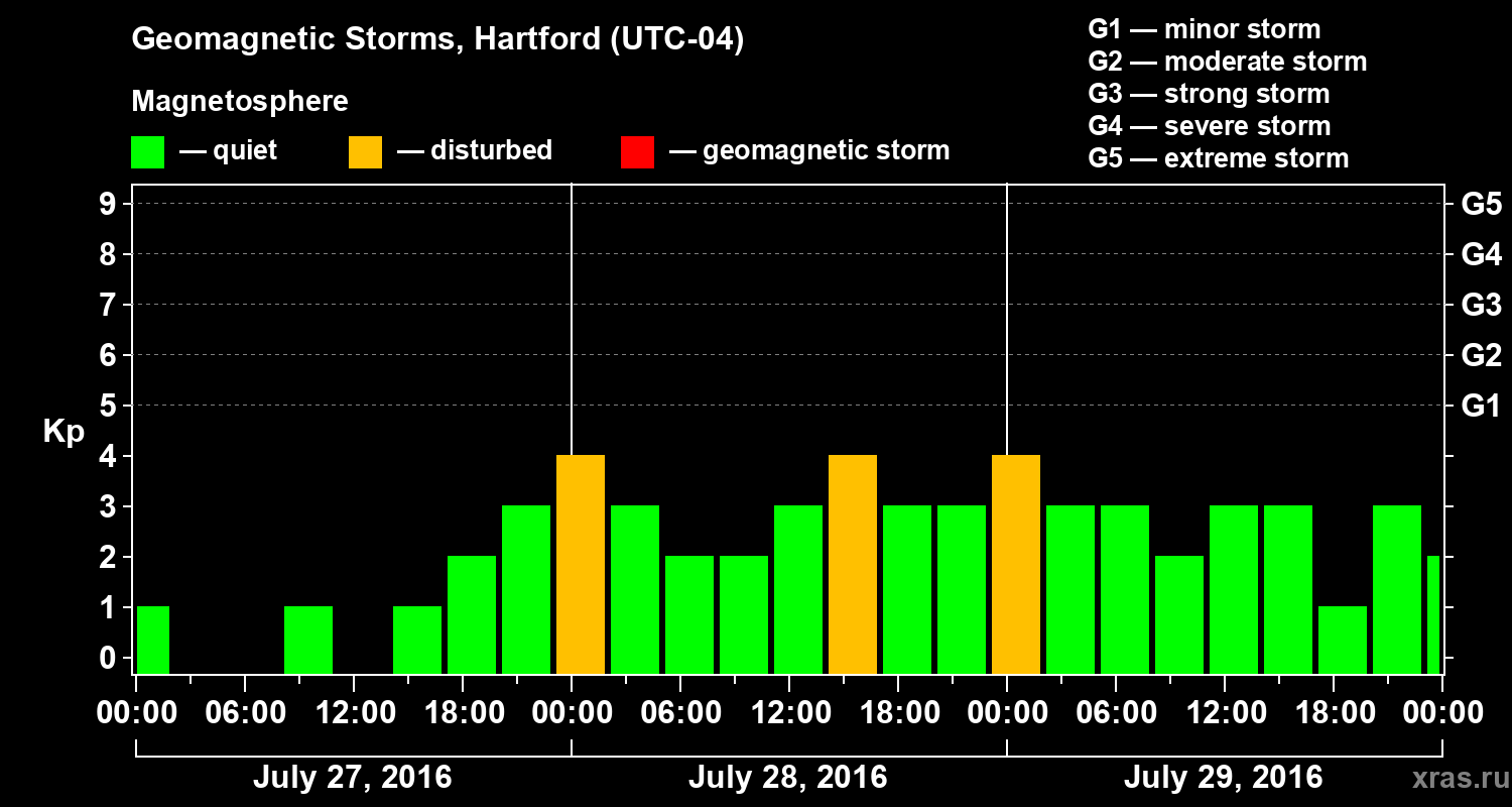 Geomagnetic storms in Hartford — Jul 29, 2016