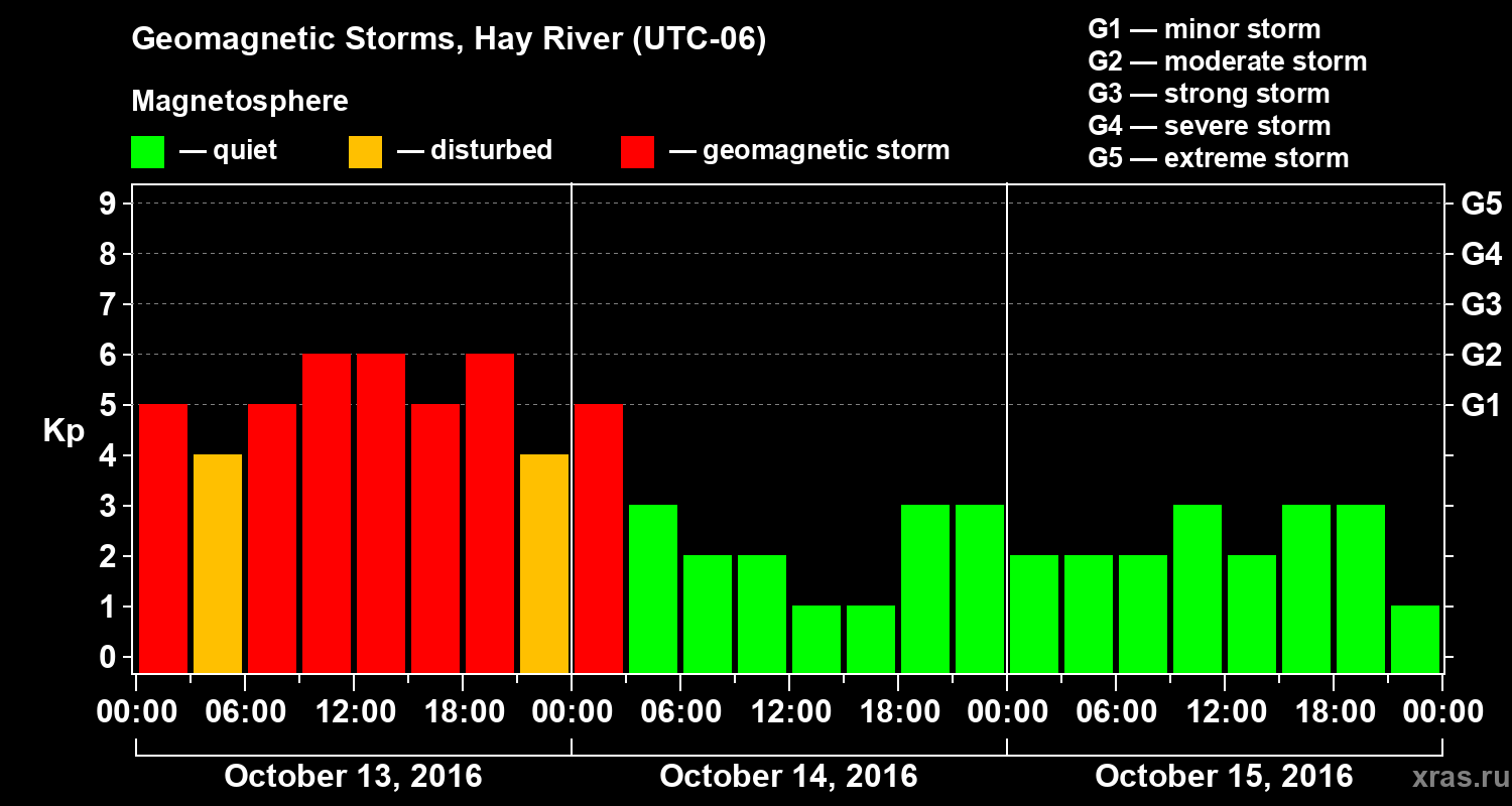 Geomagnetic storms in Hay River — Oct 15, 2016