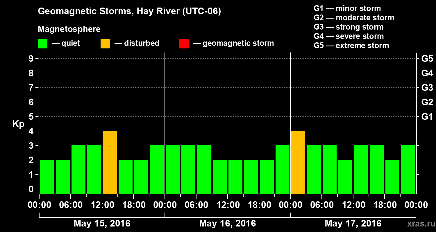 Geomagnetic storms in Hay River — May 17, 2016