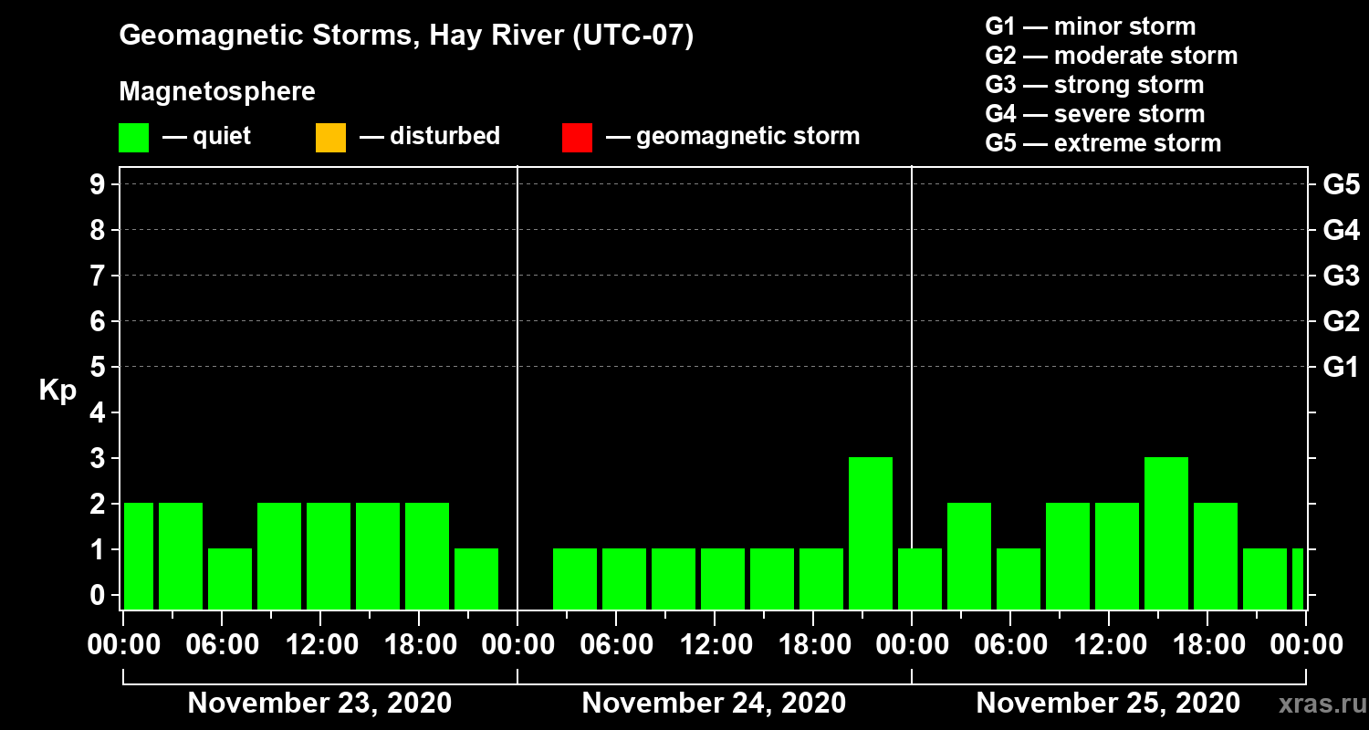 Geomagnetic storms in Hay River — Nov 25, 2020