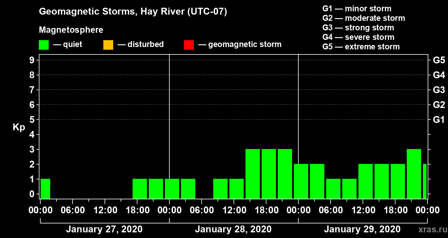 Geomagnetic storms in Hay River — Jan 29, 2020