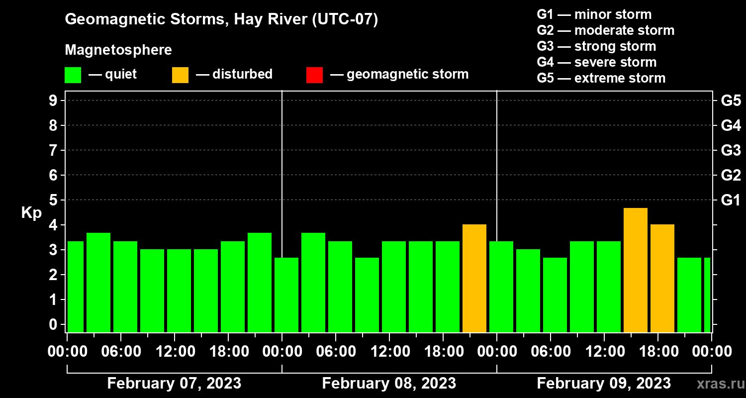 Geomagnetic storms in Hay River — Feb 09, 2023