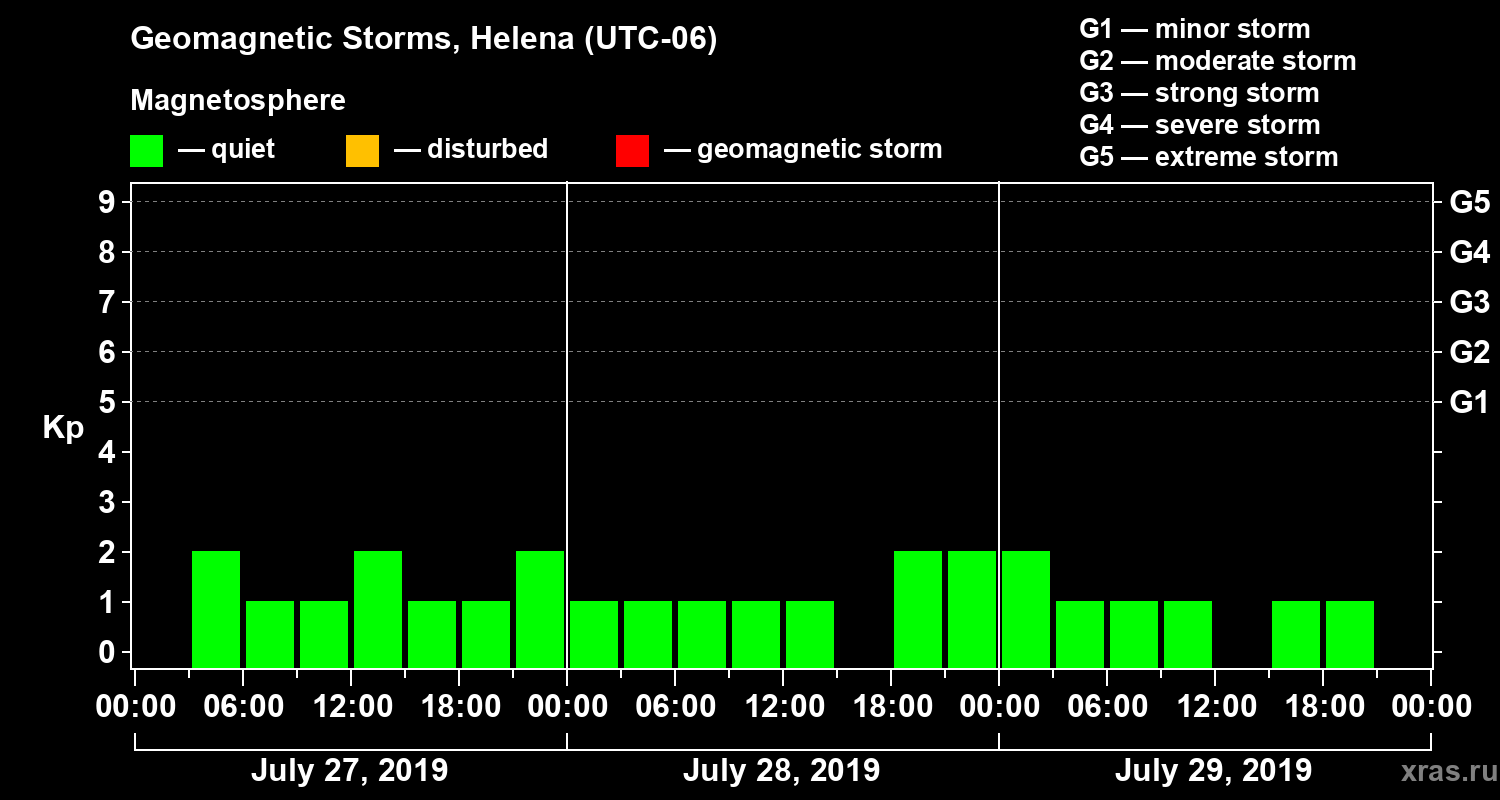 Changes in the geomagnetic index Kp from July 27 to 29, 2019 for mid latitudes