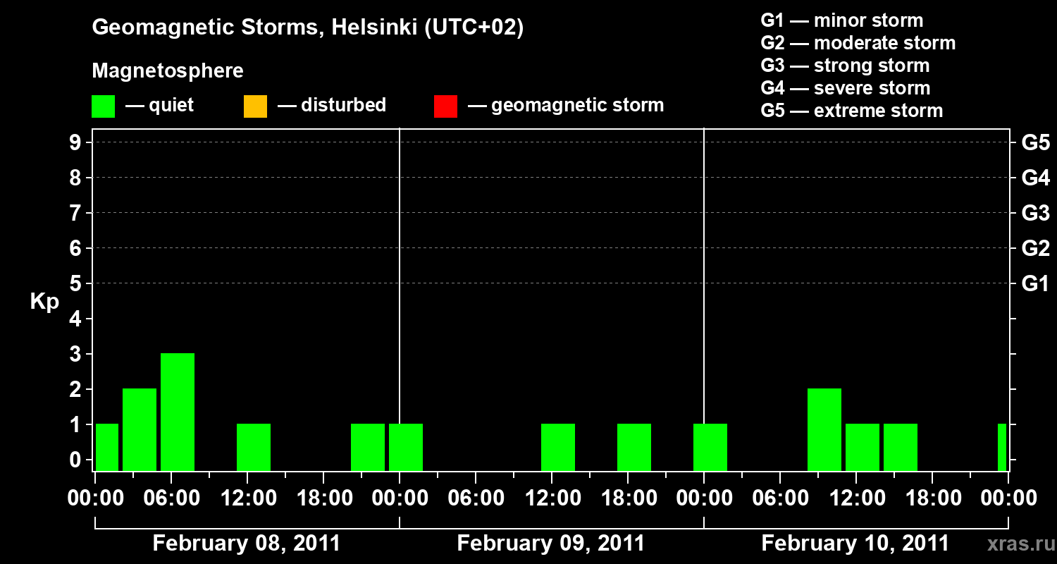 Geomagnetic storms in Helsinki — Feb 10, 2011