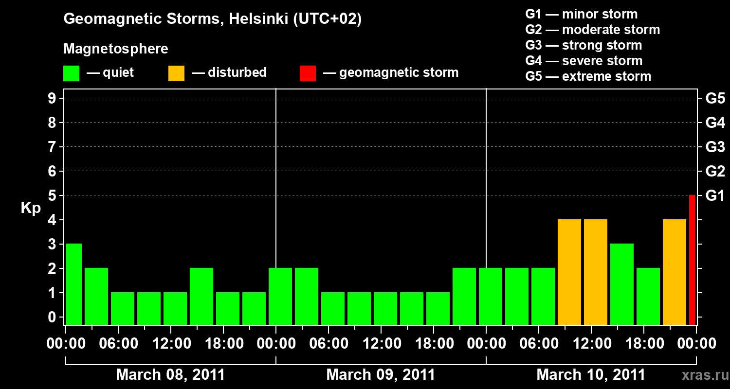 Geomagnetic storms in Helsinki — Mar 10, 2011