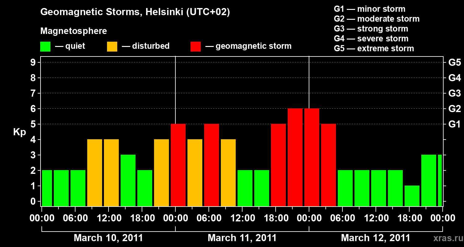 Geomagnetic storms in Helsinki — Mar 12, 2011