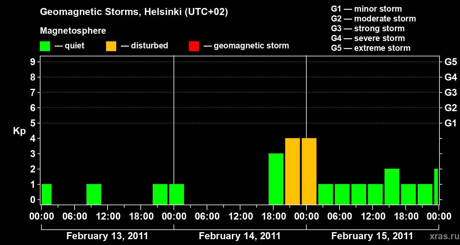 Geomagnetic storms in Helsinki — Feb 15, 2011