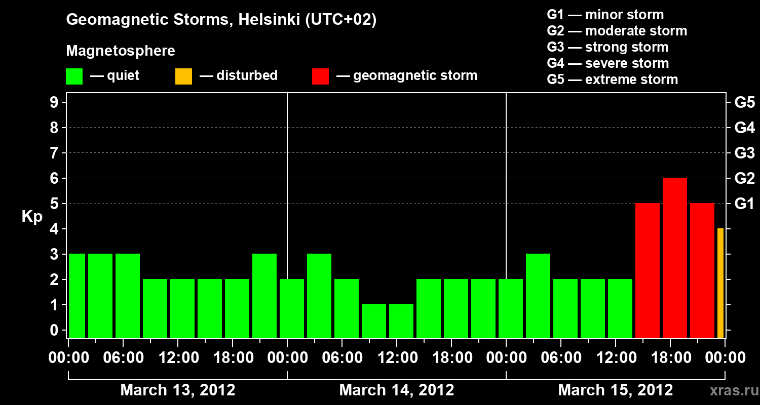 Geomagnetic storms in Helsinki on Mar 15, 2012