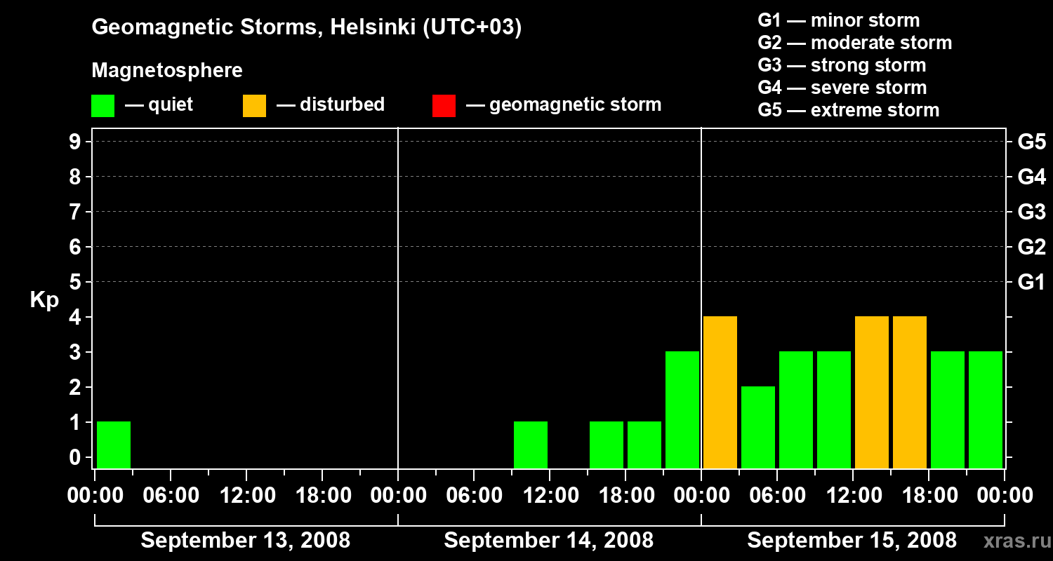 Geomagnetic storms in Helsinki — Sep 15, 2008