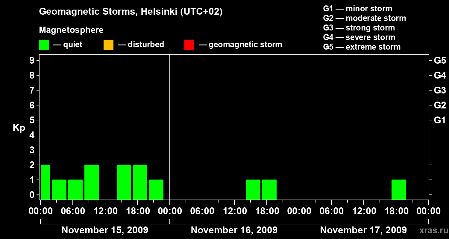 Changes in the geomagnetic index Kp from November 15 to 17, 2009 for mid latitudes