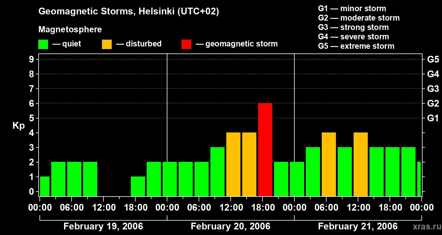Geomagnetic storms in Helsinki — Feb 21, 2006
