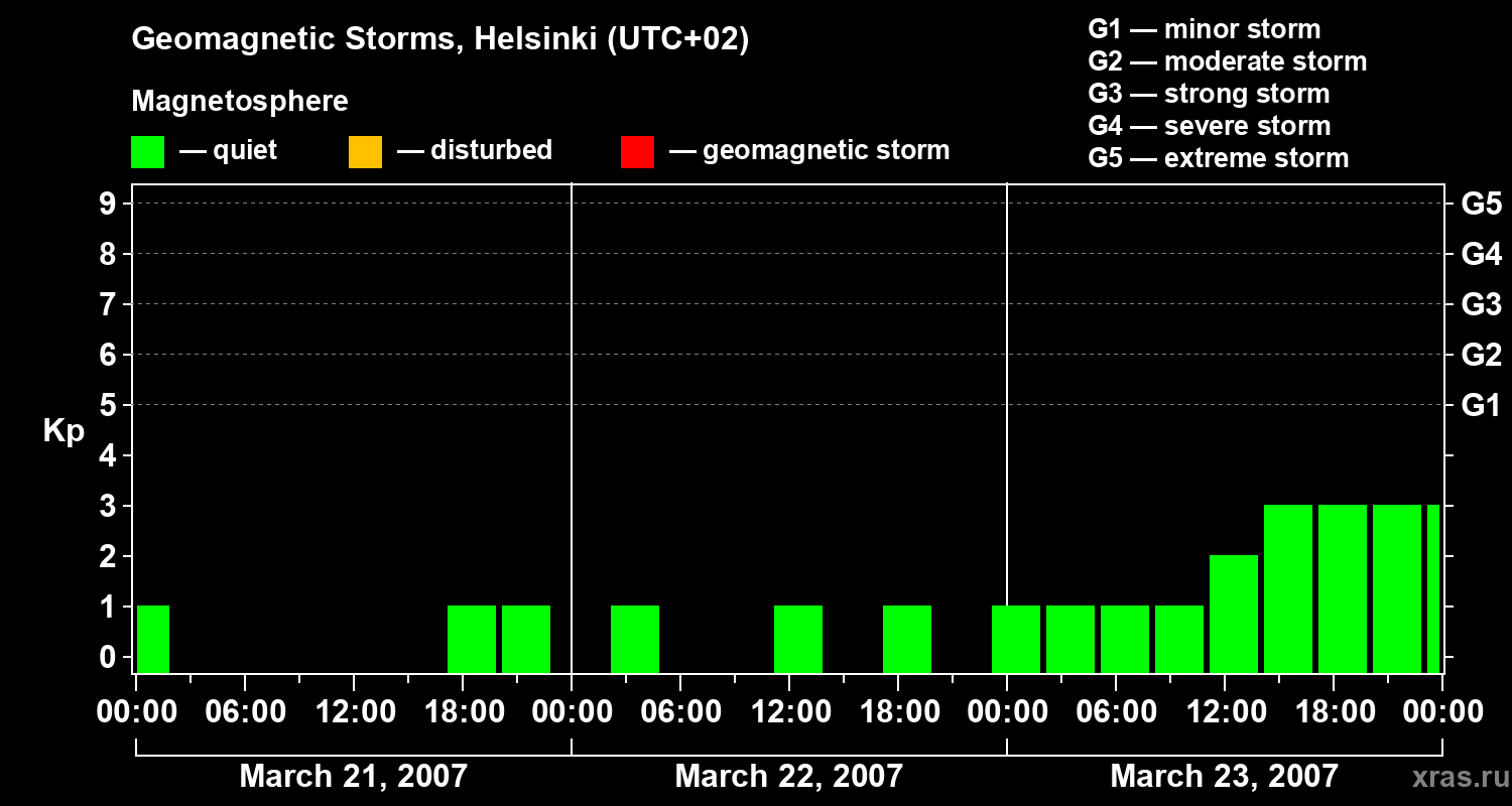 Geomagnetic storms in Helsinki — Mar 23, 2007