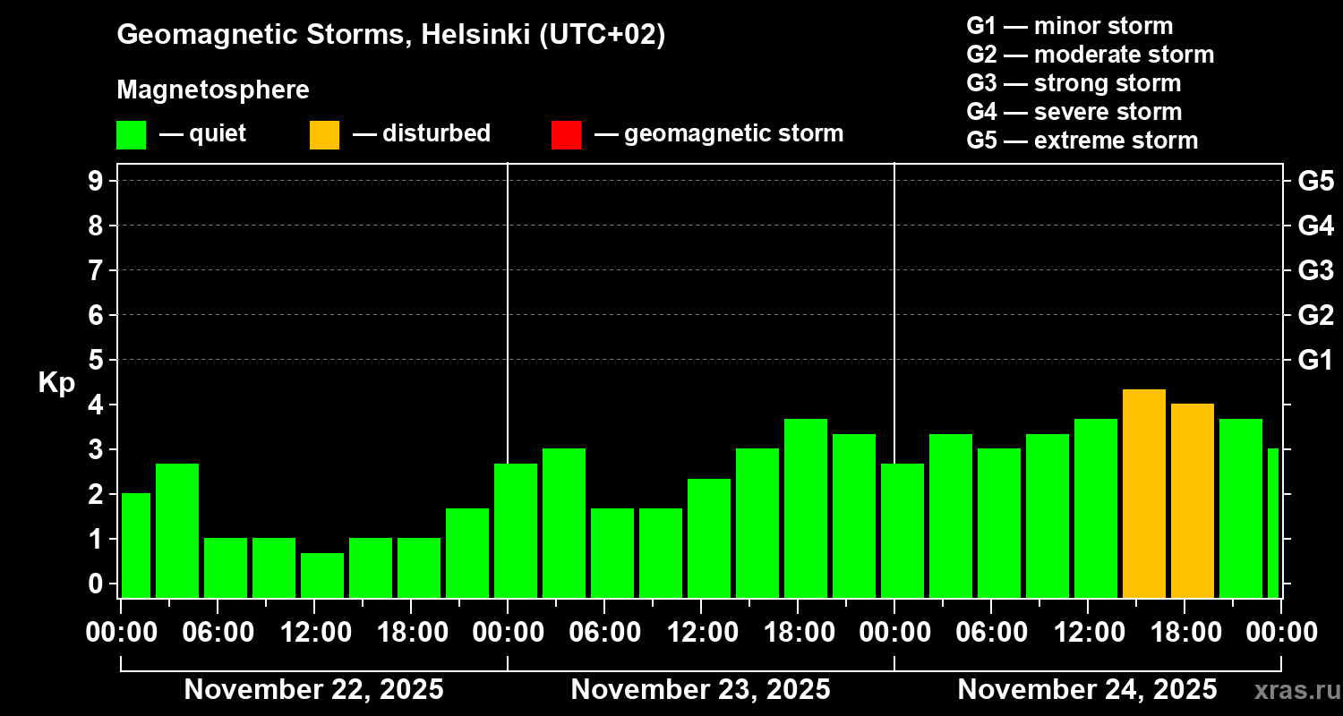 Geomagnetic storms in Helsinki — Nov 24, 2025