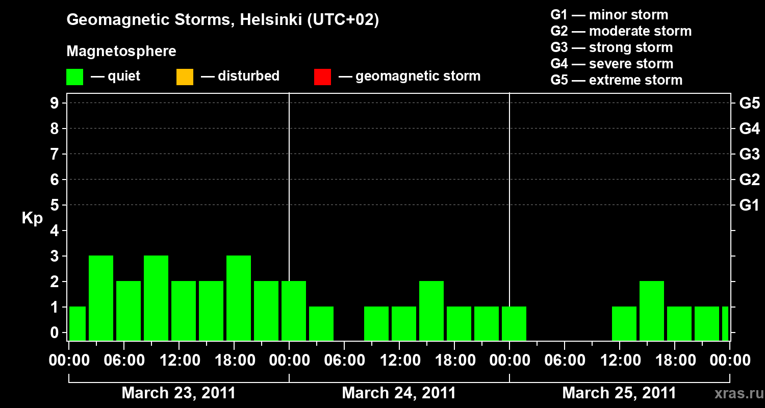 Geomagnetic storms in Helsinki — Mar 25, 2011