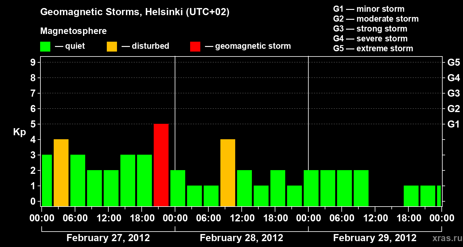 Geomagnetic storms in Helsinki — Feb 29, 2012