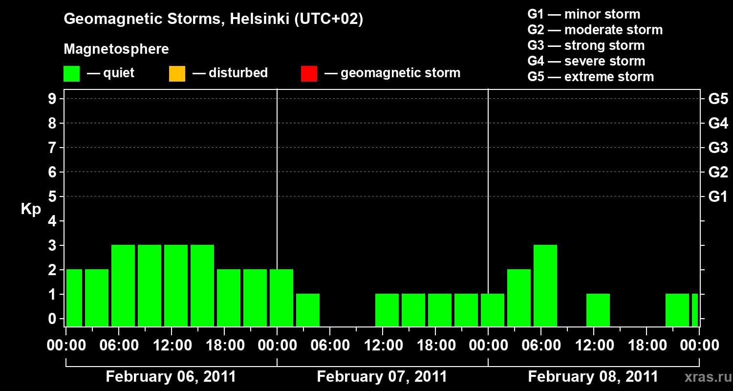 Geomagnetic storms in Helsinki on Feb 08, 2011