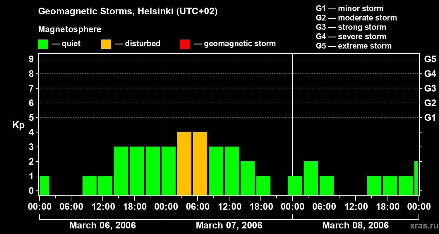 Geomagnetic storms in Helsinki — Mar 08, 2006