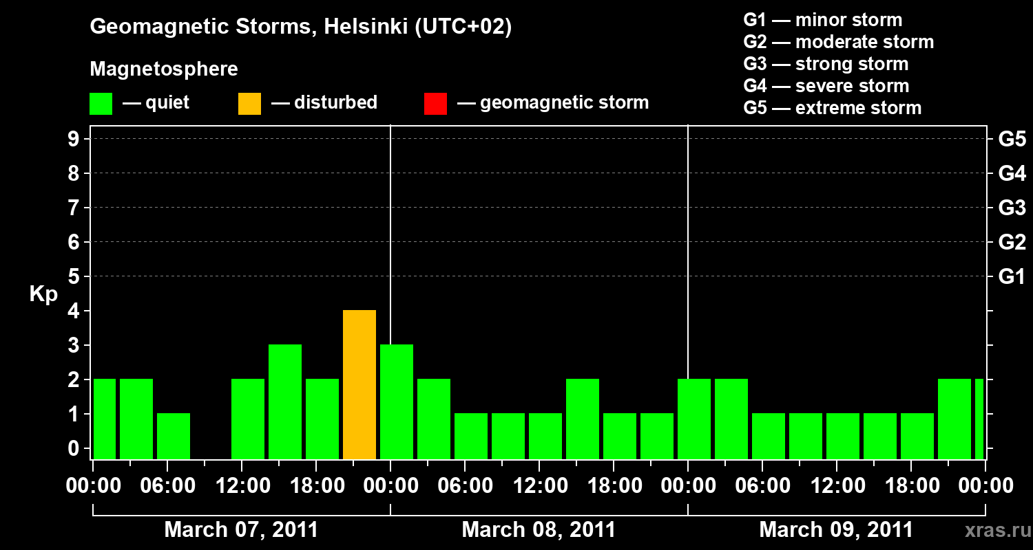 Geomagnetic storms in Helsinki on Mar 09, 2011