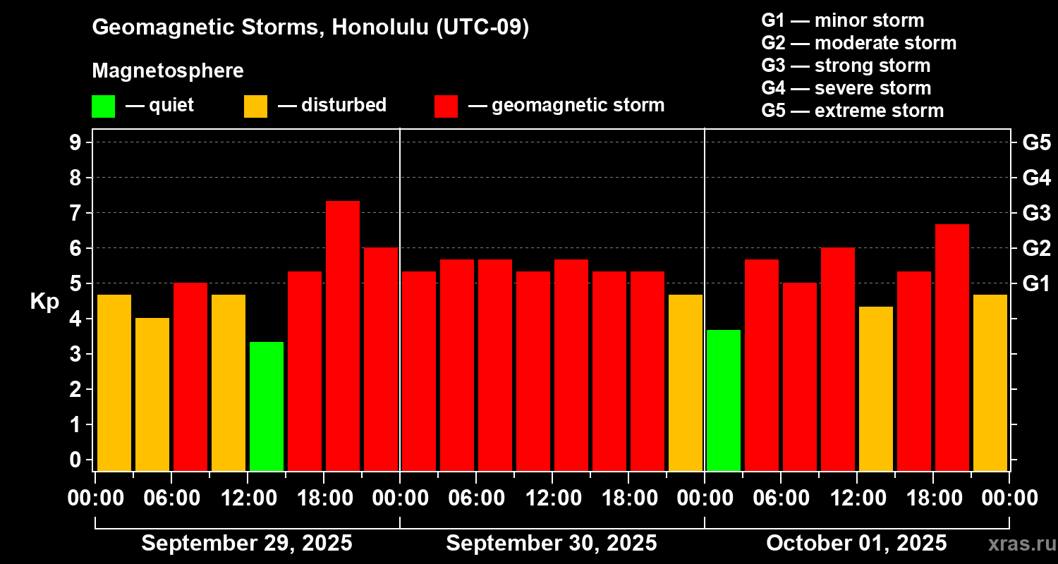 Geomagnetic storms in Honolulu — Oct 01, 2025