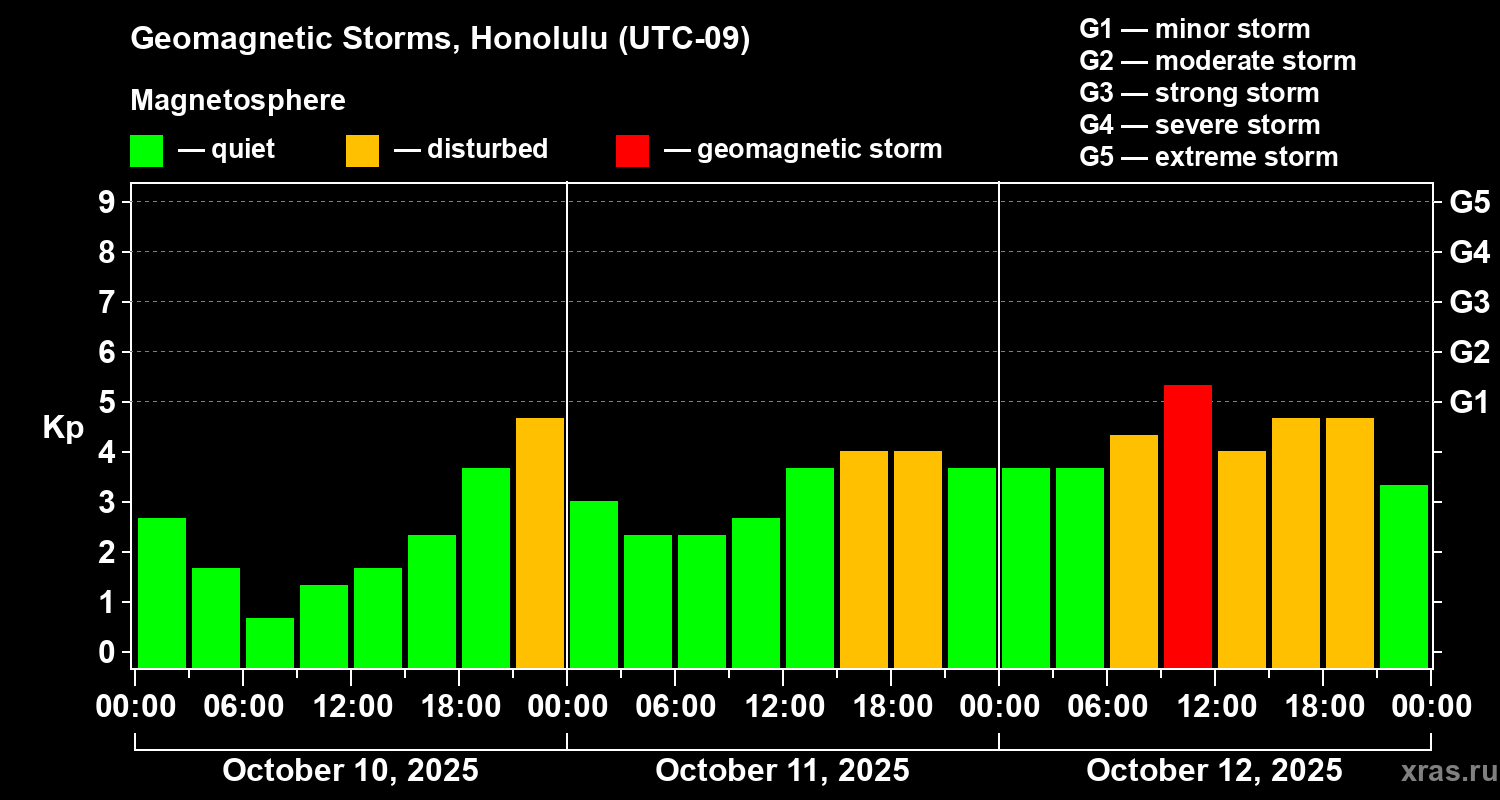Geomagnetic storms in Honolulu — Oct 12, 2025