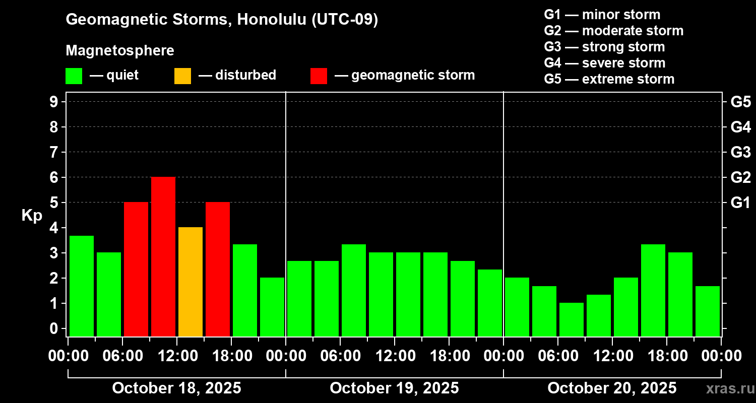 Geomagnetic storms in Honolulu in October 2025