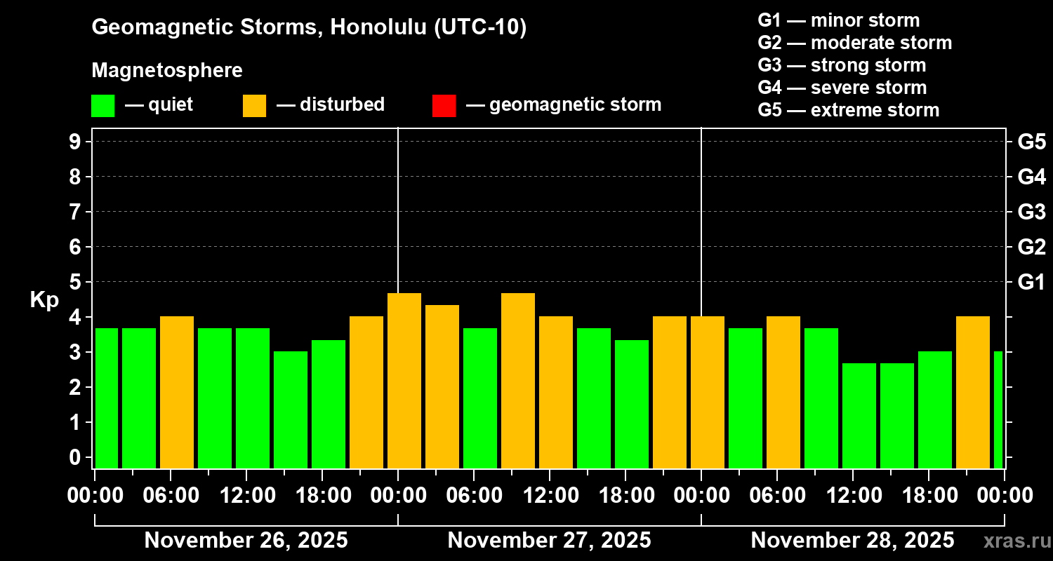 Geomagnetic storms in Honolulu on Nov 28, 2025