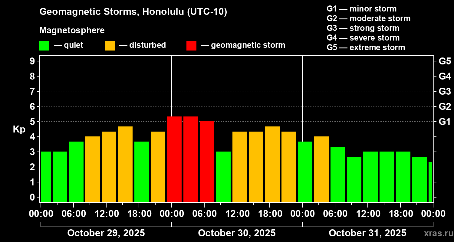 Geomagnetic storms in Honolulu on Oct 31, 2025