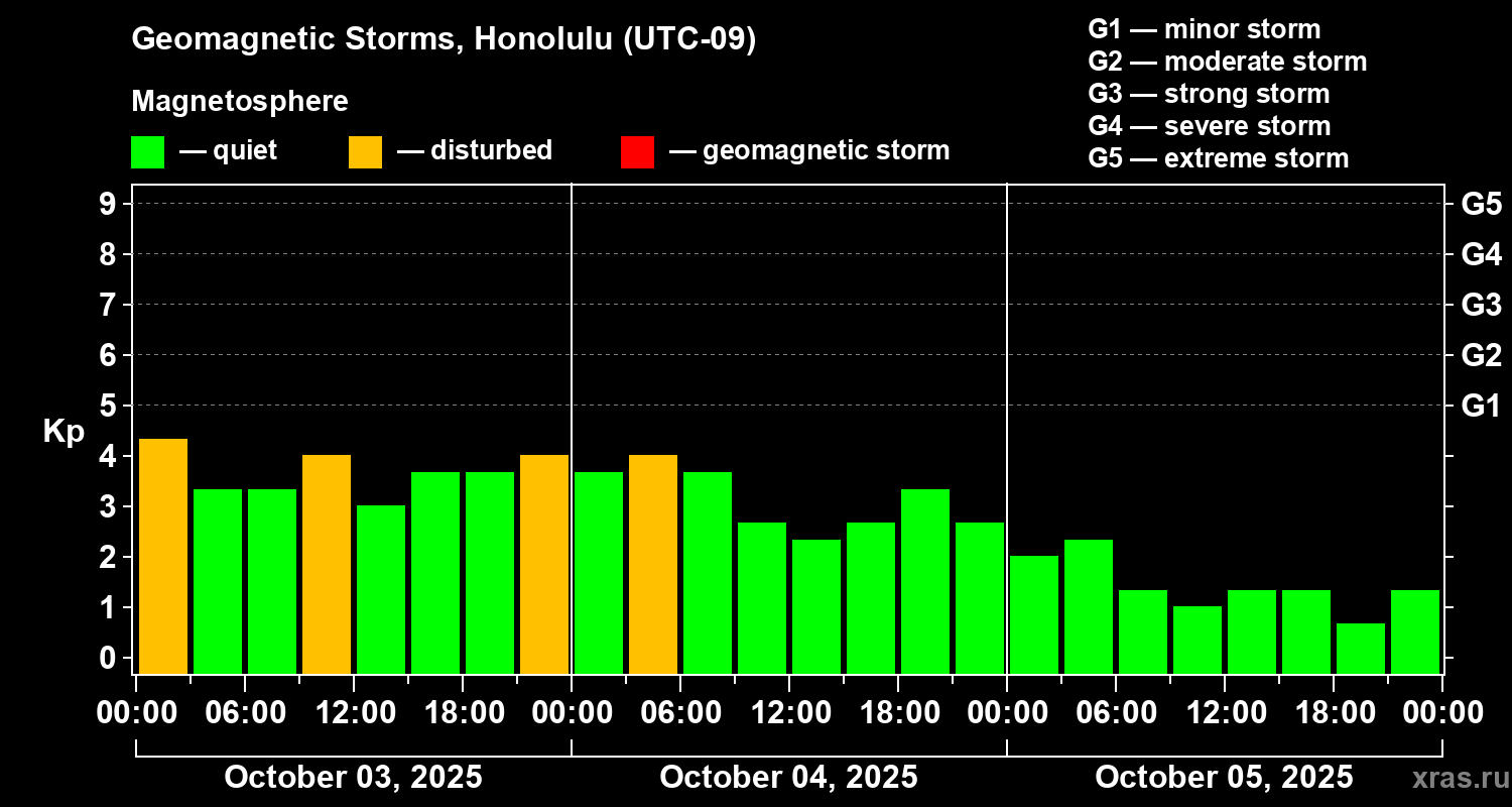Geomagnetic storms in Honolulu on Oct 05, 2025