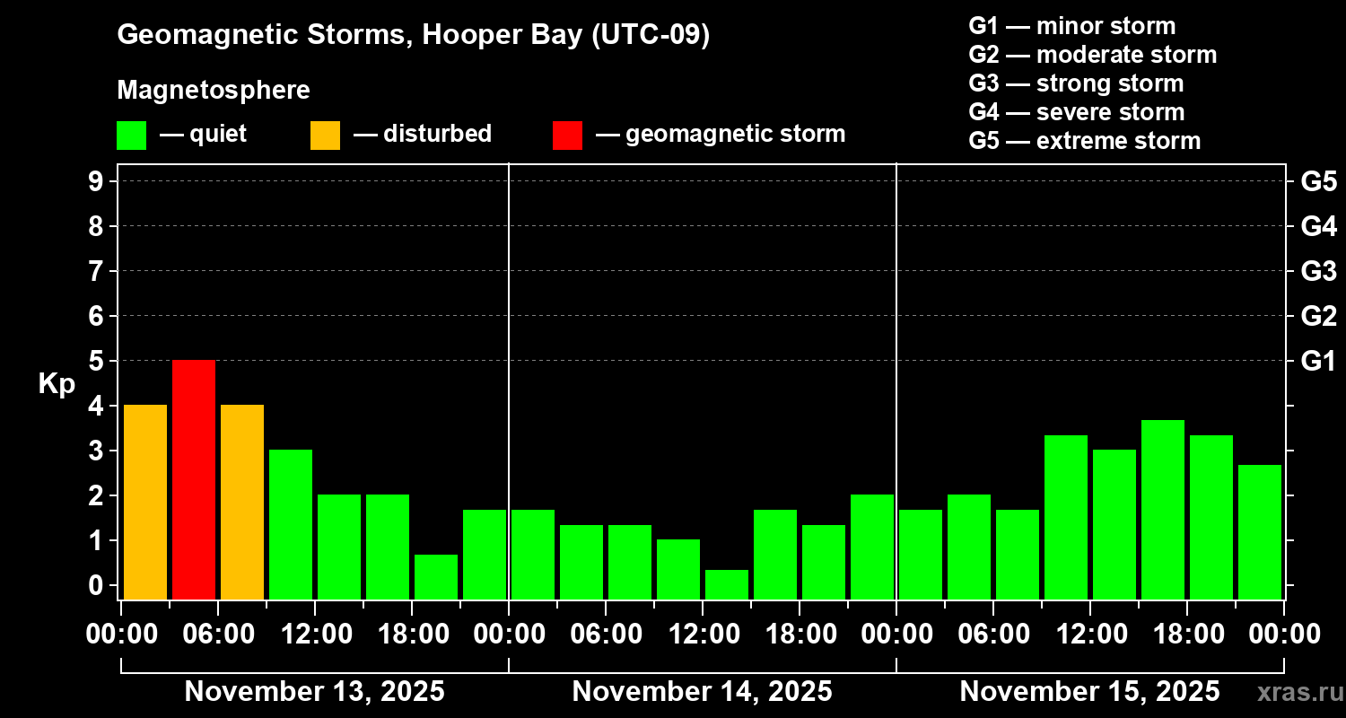 Geomagnetic storms in Hooper Bay — Nov 15, 2025