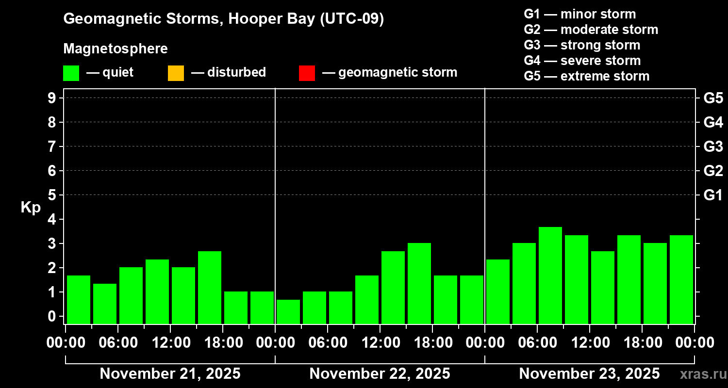 Geomagnetic storms in Hooper Bay — Nov 23, 2025
