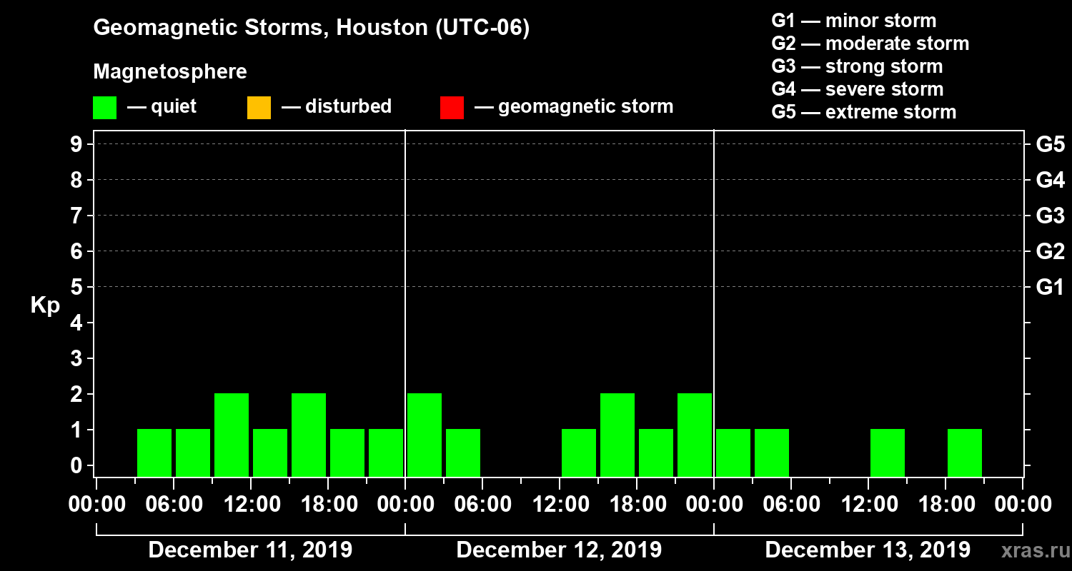 Changes in the geomagnetic index Kp from December 11 to 13, 2019 for mid latitudes